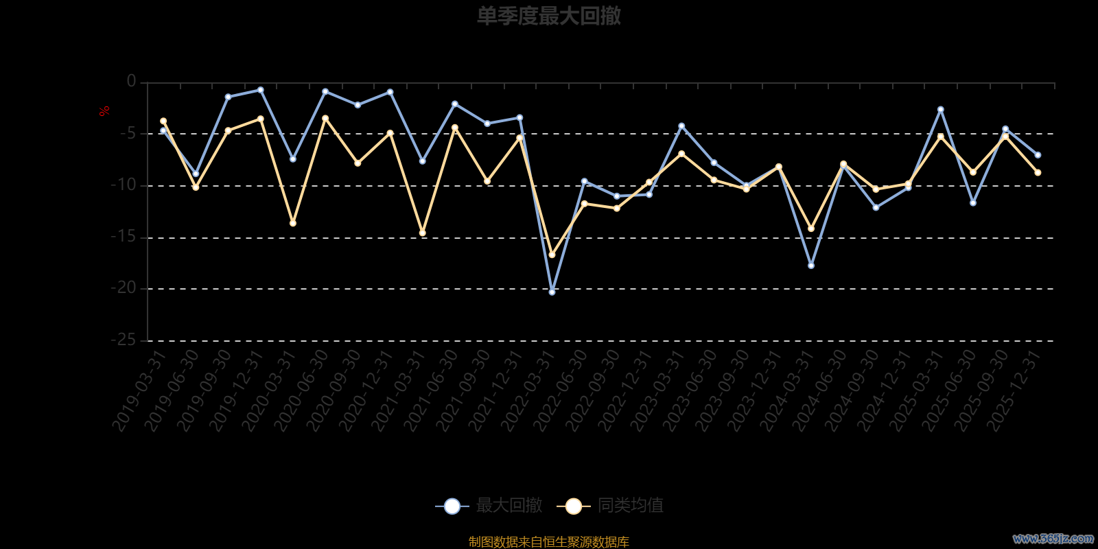 通过所选区间该基金净值增长率分位图财富加,可以观察该基金与同类基金业绩比较情况。图为坐标原点到区间内某时点的净值增长率在同类基金中的分位数。