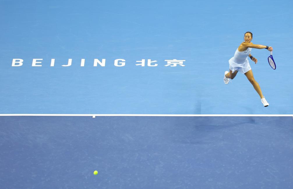 9月27日,郑钦文在比赛中。新华社记者 白雪飞 摄