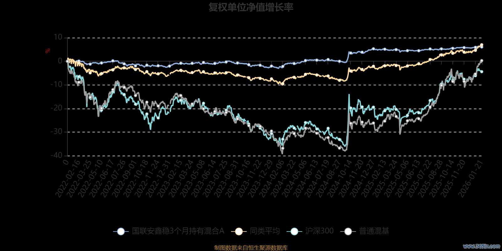 截至1月21日,国联安鑫稳3个月持有混合A近三个月复权单位净值增长率为0.55%,位于同类可比基金554/629;近半年复权单位净值增长率为0.91%,位于同类可比基金579/629;近一年复权单位净值增长率为0.99%,位于同类可比基金616/626;近三年复权单位净值增长率为7.00%,位于同类可比基金432/564。