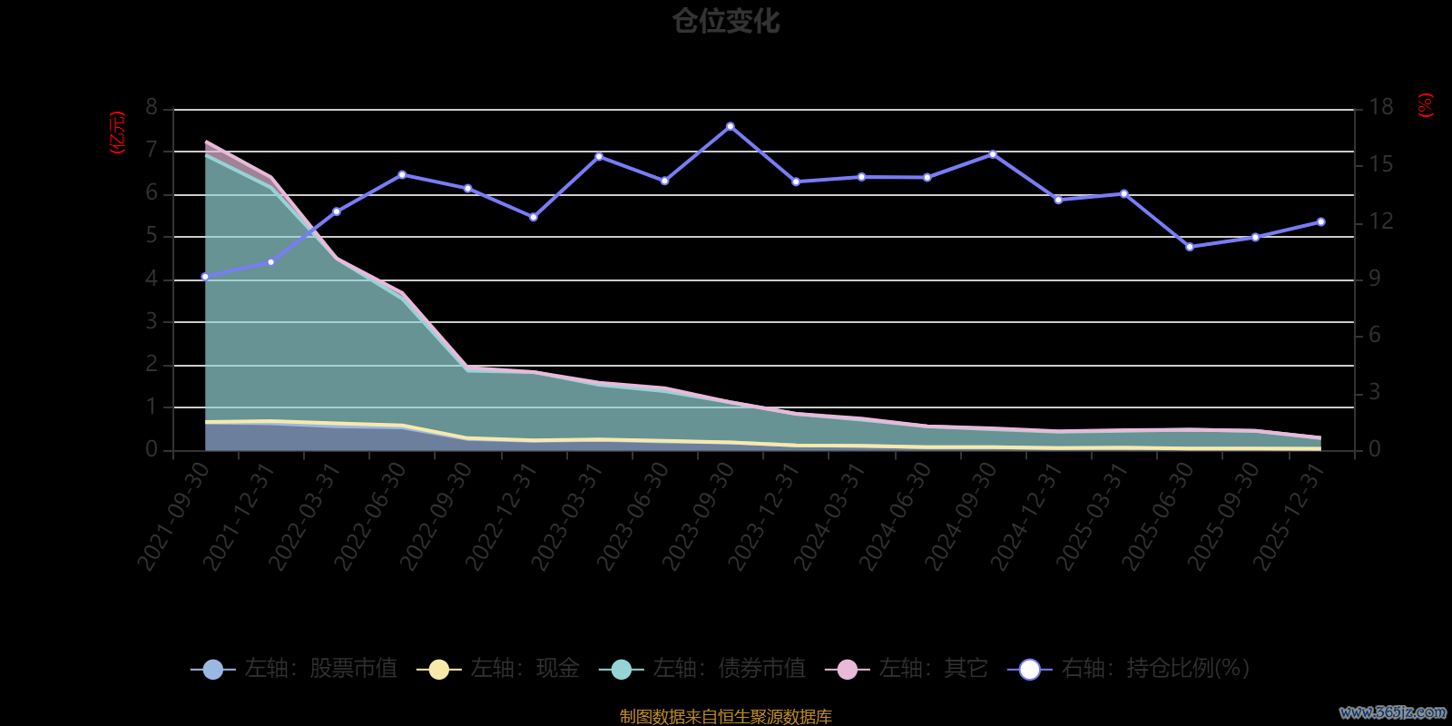 据定期报告数据统计,近三年平均股票仓位为13.84%,同类平均为19.2%。2023年三季度末基金达到17.08%的最高仓位,2021年三季度末最低,为9.16%。