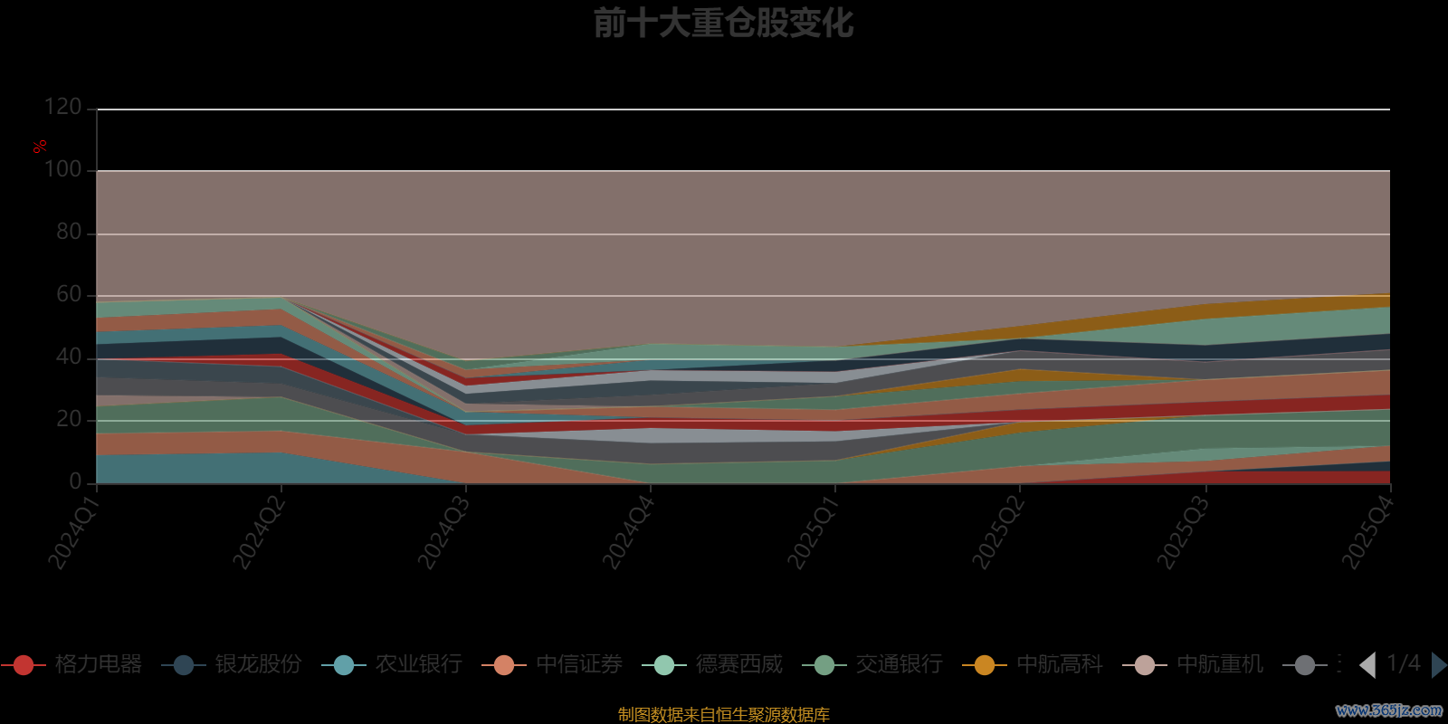 截至2025年四季度末,基金十大重仓股分别是交通银行、长江电力、工商银行、海尔智家、星宇股份、中信证券、伊利股份、三一重工、格力电器、银龙股份。